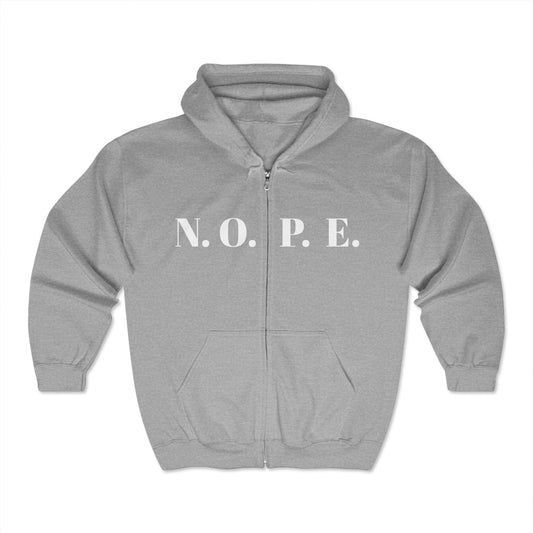 Comfy Unisex Zip Hoodie with 'N.O.P.E' Design - Perfect for Relaxation, Gifts, Casual Wear, and Occasions
