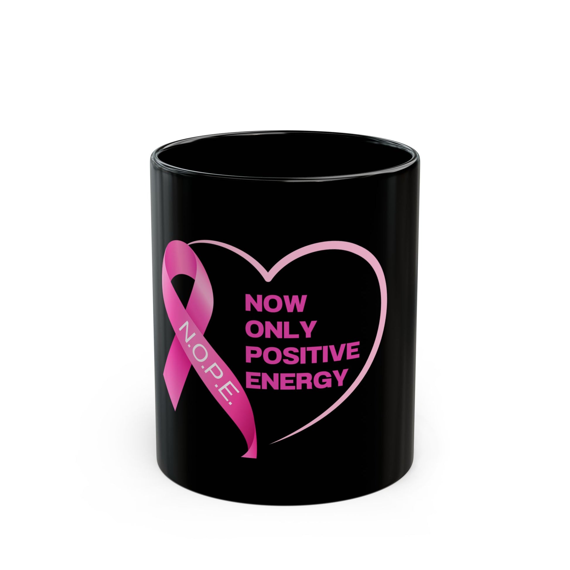 This Breast Cancer Positive Energy Mug is designed to inspire and uplift, making it a perfect gift for anyone fighting or surviving breast cancer. With its glossy black ceramic finish and vibrant colors, this mug radiates positivity and strength. It is suitable for adults and is microwave and dishwasher safe, meeting all lead and cadmium level requirements. Available in two sizes, 11oz, and 15oz, with a C-shaped easy-grip handle.